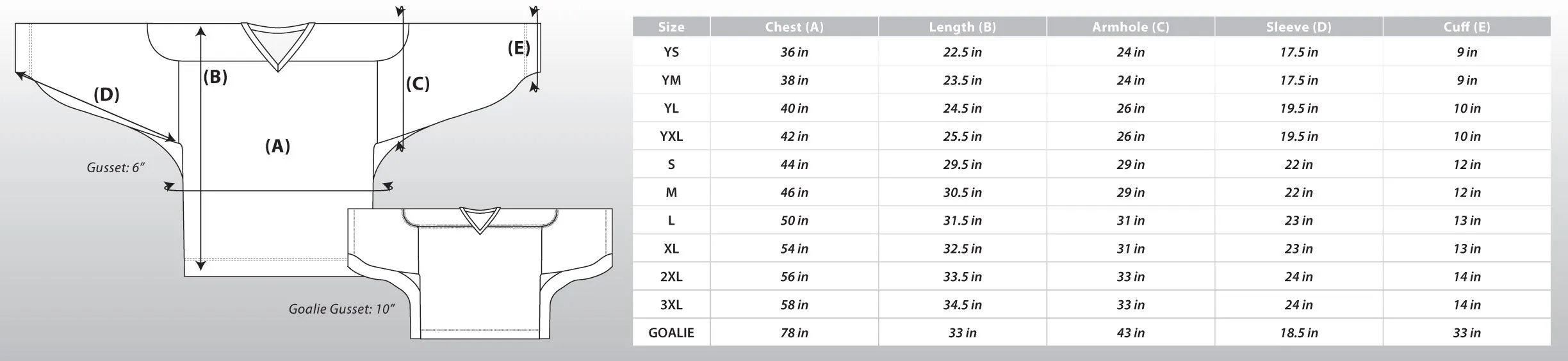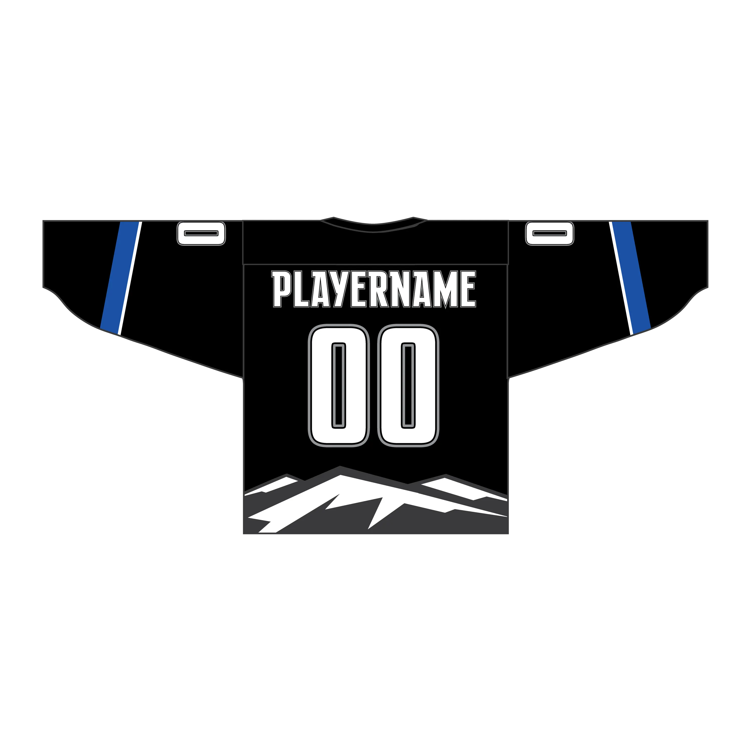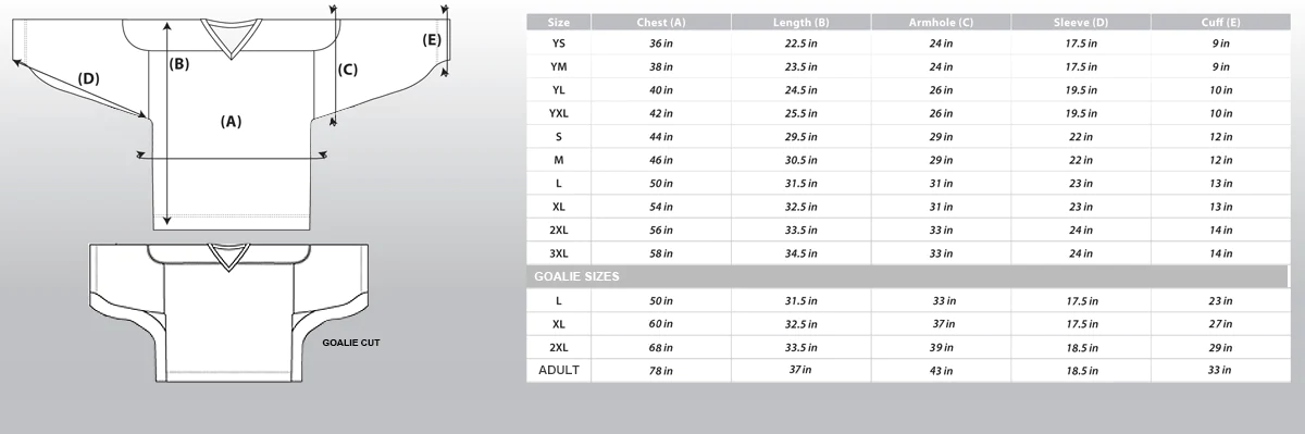 Our full custom dye sublimated box lacrosse jersey comes standard with double yoke, 6" gussete and collar. Numbers are always included. There are no limitation on the amount of colours and graphics you can add while maintaining a lightweight breathable jersey.
